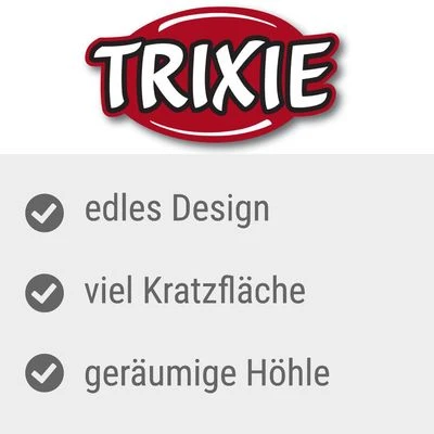 Elegant and versatile: If you are looking for a stylish and imaginative scratching opportunity for your pussycat, the Trixie cave with scratching ball is just what you need. The small but fine scratching furniture scores not only with its noble design in a structured, earth-coloured soft plush look and heavy real wood top, but also with high functionality!