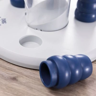 The blue discs have a loop for your dog to pull to make the treats drop down and eventually fall out of the tower. Getting the order right here can prove especially challenging! Once you’ve coached your dog through the challenge and praised it for solving the puzzle, check the included practice book for tips on how to make the game even more fun and varied.